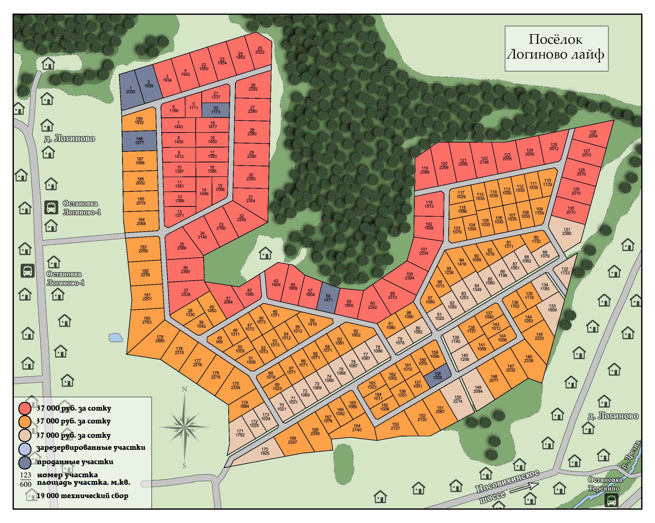 - Автобусная остановка "Логиново-1" рядом с поселком.